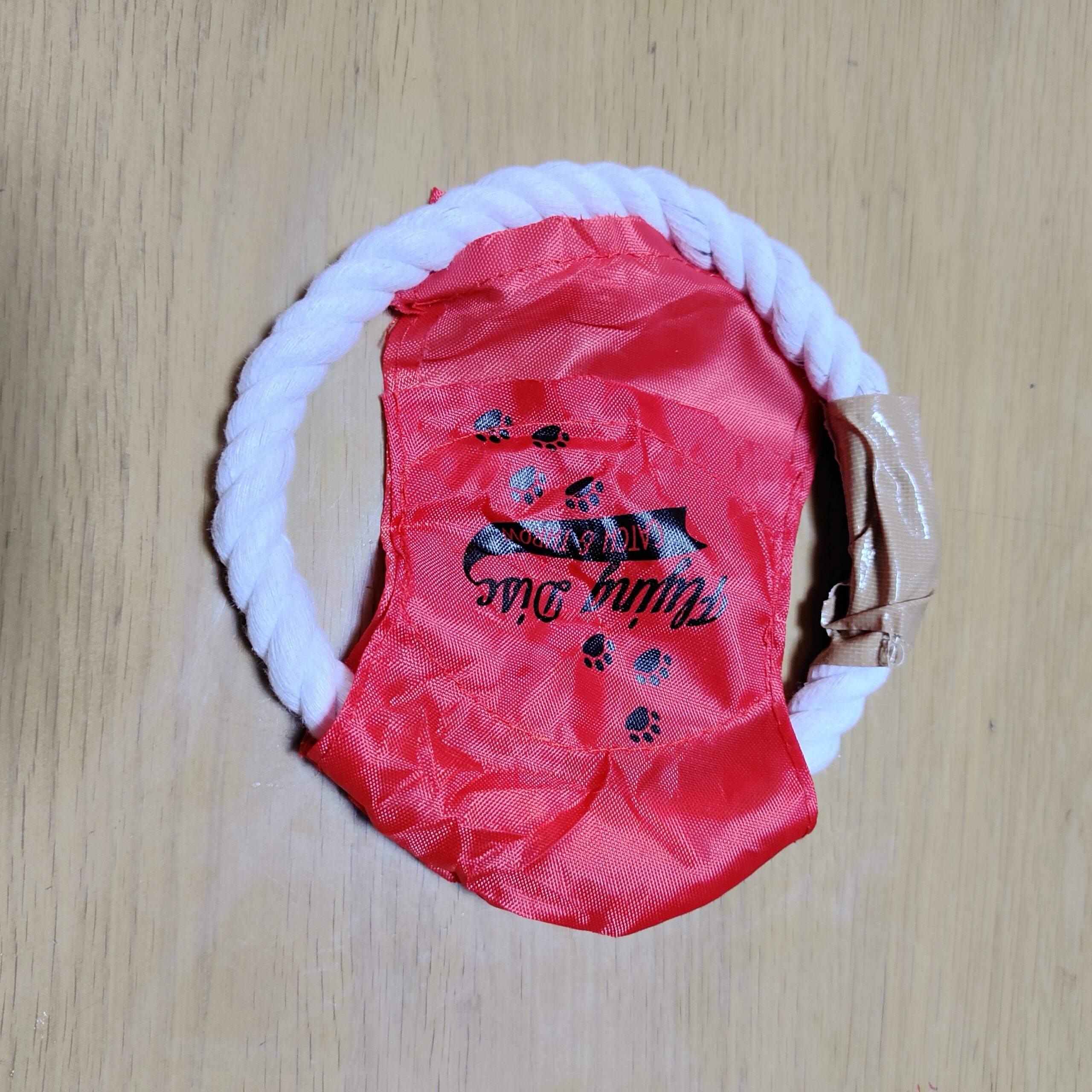 プーリーとひもは、ホームセンターで合わせて1000円位で、犬のおもちゃはダイソーで購入しました。